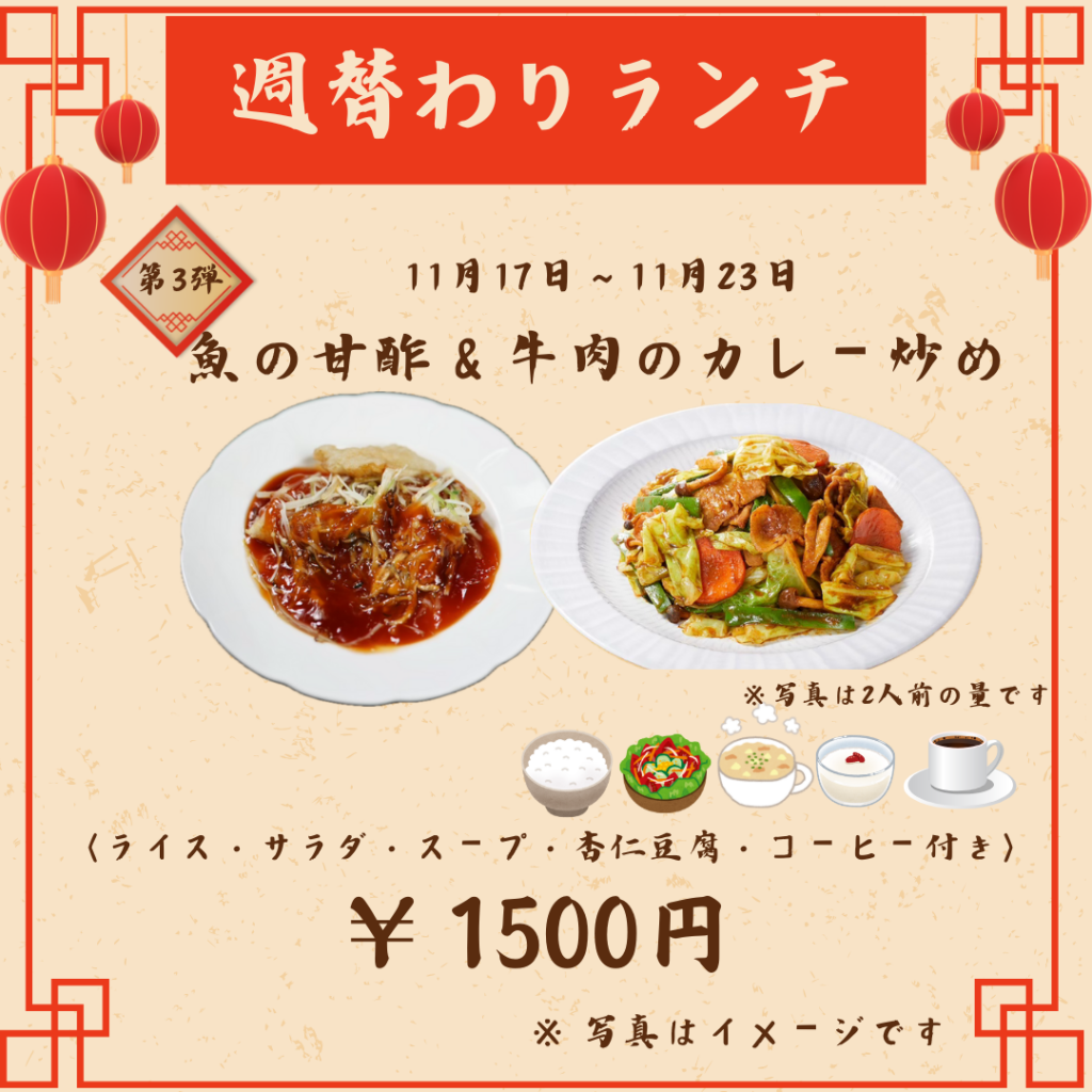 さて、早速ではございますが、当館1階にございます、中華レストラン【王朝】の週替わりランチについてご紹介🌟